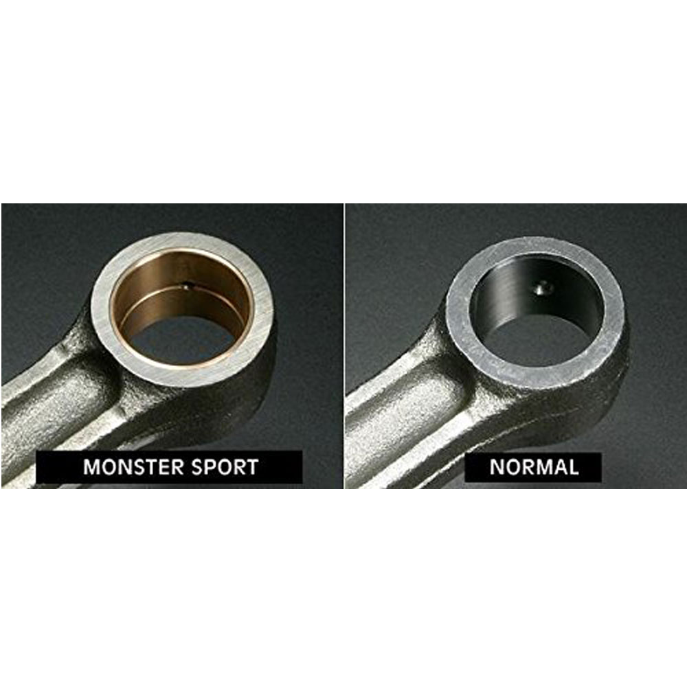 モンスター・ハイパフォーマンスコンロッドは、潤滑性・放熱性・耐熱性が高いレベルでバランスされた銅合金のブッシュ素材を圧入した上で精密加工を行い、高負荷に耐える潤滑性を確保しました。